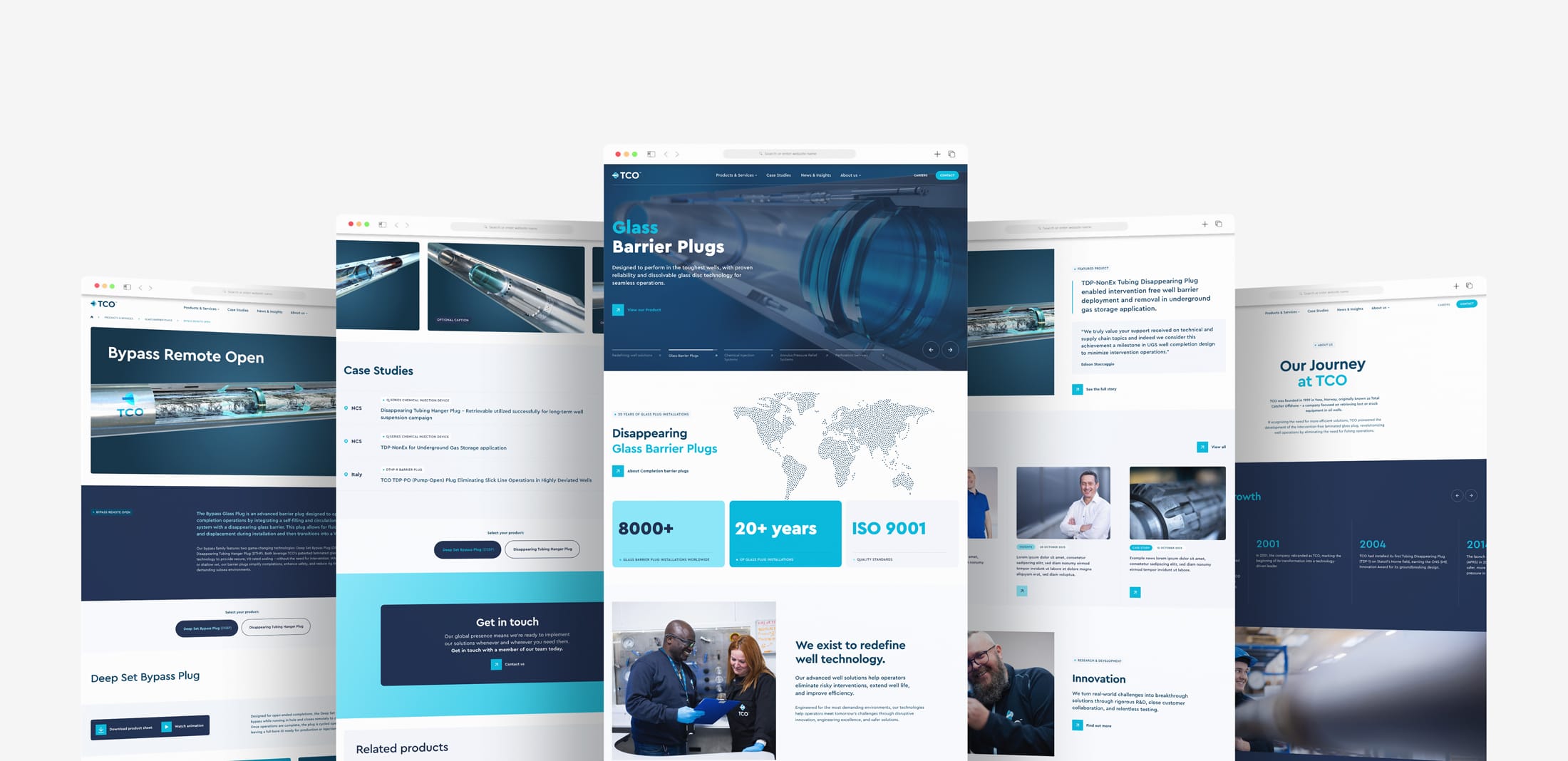 With over 26 years of industry expertise, TCO has built a global reputation for enhancing efficiency and safety through innovative downhole technology. Their product range – from Completion Barrier Plugs to Chemical Injection Systems – demonstrates a clear commitment to safe and sustainable energy production. We have supported TCO with marketing and communications for several years, and the need for a new website has been evident for some time. The previous site was heavily outdated and lacked both the functionality and visual quality expected from a modern, user-friendly platform. Internally, the feeling was that it did not accurately represent or showcase TCO’s brand, people, technologies, or achievements – so much so that staff often avoided sharing links to it.